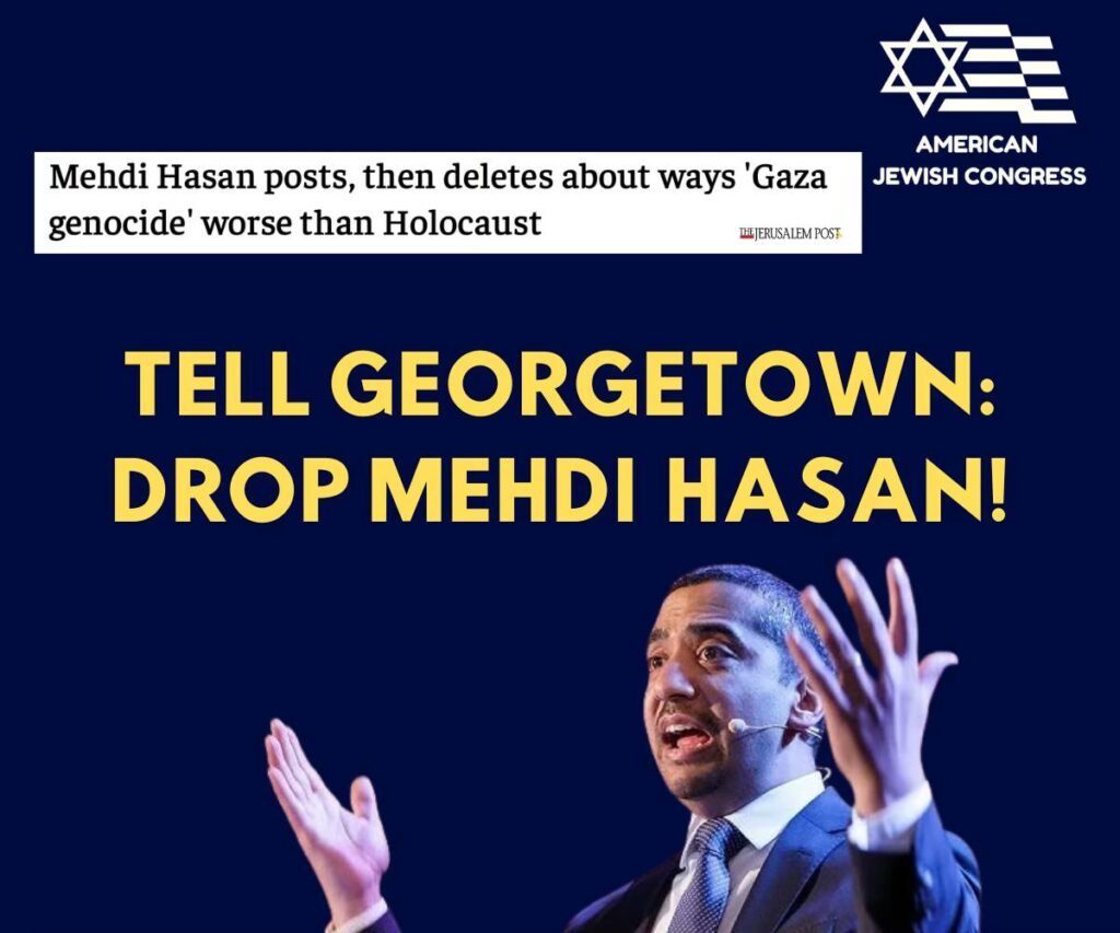 At a time of skyrocketing antisemitism on college campuses, Georgetown University is appointing Mehdi Hasan as a Visiting Fellow, who has shockingly said that the war in Gaza was “worse than” the Holocaust.