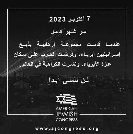 السابع من أكتوبر 2023، يوم سيعيش في حالة من العار؛ عندما قامت جماعة إرهابية بقتل إسرائيليين أبرياء، وفرضت حربا على سكان غزة الأبرياء، ونشرت الكراهية في العالم.
