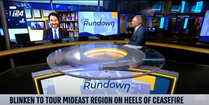 Our Executive Director Joel Rubin discusses on i24NEWS the diplomatic efforts to reach a sustainable ceasefire between Israel and the terrorist organization Hamas, and analyzes Secretary Blinken’s trip in the Middle East.