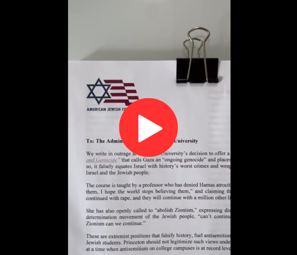 New York, NY — Nearly 11,000 people have signed a letter sent today by the American Jewish Congress urging Princeton University to cancel a course that describes Gaza as an “ongoing genocide” and compares it to the Holocaust.