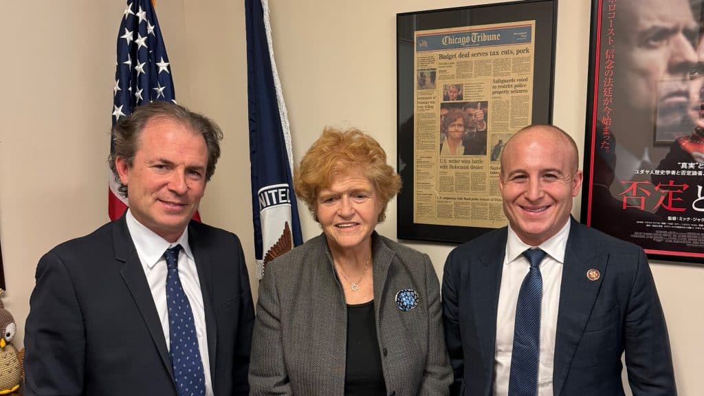 American Jewish Congress Vice Chair Daniel Rosen and former Rep. Max Rose with Ambassador Deborah Lipstadt